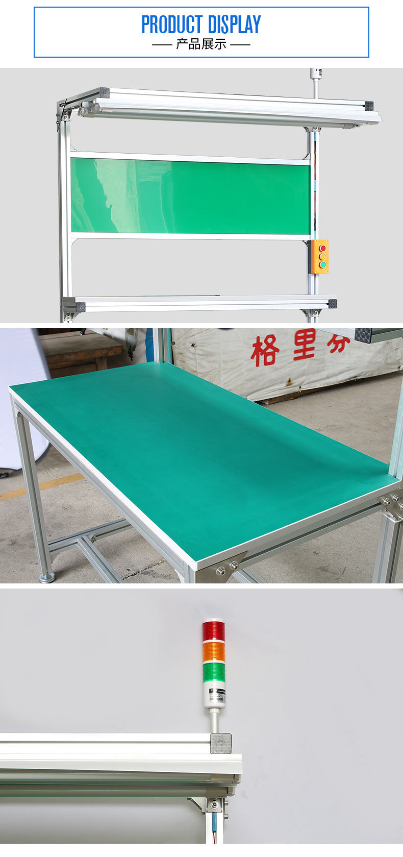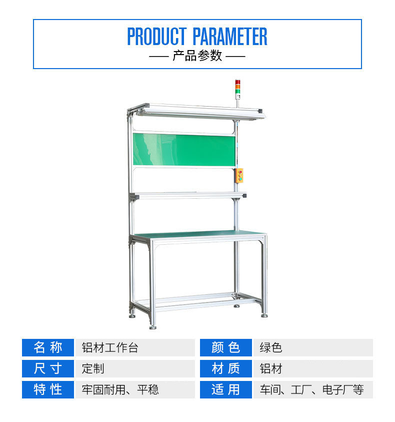 自動(dòng)化生產(chǎn)流水線工作臺(tái)在產(chǎn)品加工生產(chǎn)中的作用是作為操作平臺(tái),即用于工作人員完成產(chǎn)品的裝配、包裝等操作。它的結(jié)構(gòu)形式也因使用環(huán)境和行業(yè)不同會(huì)有不同的設(shè)計(jì),工作臺(tái)的結(jié)構(gòu)樣式,我們可以參考它的分類。我們可以將常見的工作臺(tái)進(jìn)行簡(jiǎn)單做如下分類1、獨(dú)立工作臺(tái):即一個(gè)工作臺(tái)獨(dú)立作為一個(gè)操作平臺(tái);2、防止